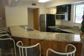Fully equipped kitchen for party or meeting needs with a serving or seating bar.